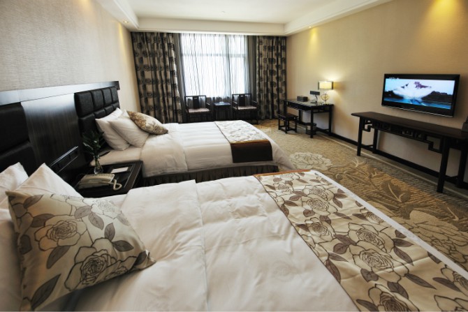 房?jī)?nèi)設(shè)施齊全,使用中央空調(diào),37寸3D液晶電視,客房免費(fèi)提供不計(jì)時(shí)國(guó)內(nèi)長(zhǎng)途電話,免費(fèi)光纖網(wǎng)絡(luò)接入,紅木家具,保險(xiǎn)箱、冰箱。酒店餐廳設(shè)有豪華餐飲包房11間。